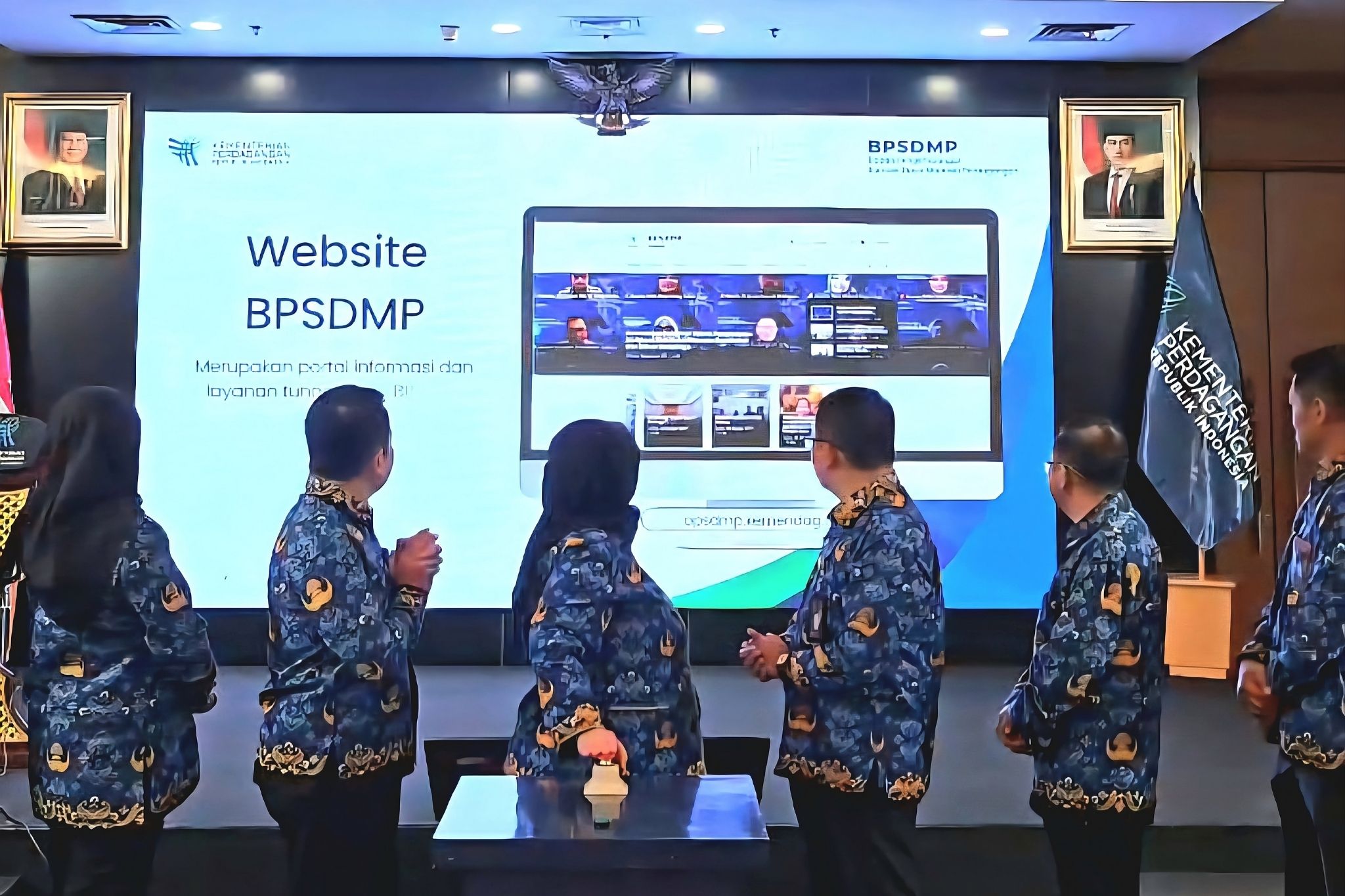 Wajah Baru BPSDMP Kepala Badan Pengembangan SDM Perdagangan, Mardyana Listyowati, didampingi Para Pejabat di Lingkungan BPSDMP dan Kepala Pusat Data dan Sistem Informasi meresmikan peluncuran portal website baru BPSDMP pada Senin, 17 November 2025. Portal baru ini menjadi investasi untuk mewujudkan transparansi, aksesibilitas, dan kecepatan pelayanan yang lebih baik kepada publik. Website ini direncanakan akan menjadi "wadah tunggal" (single portal) yang mengintegrasikan seluruh layanan digital di lingkungan BPSDMP.
